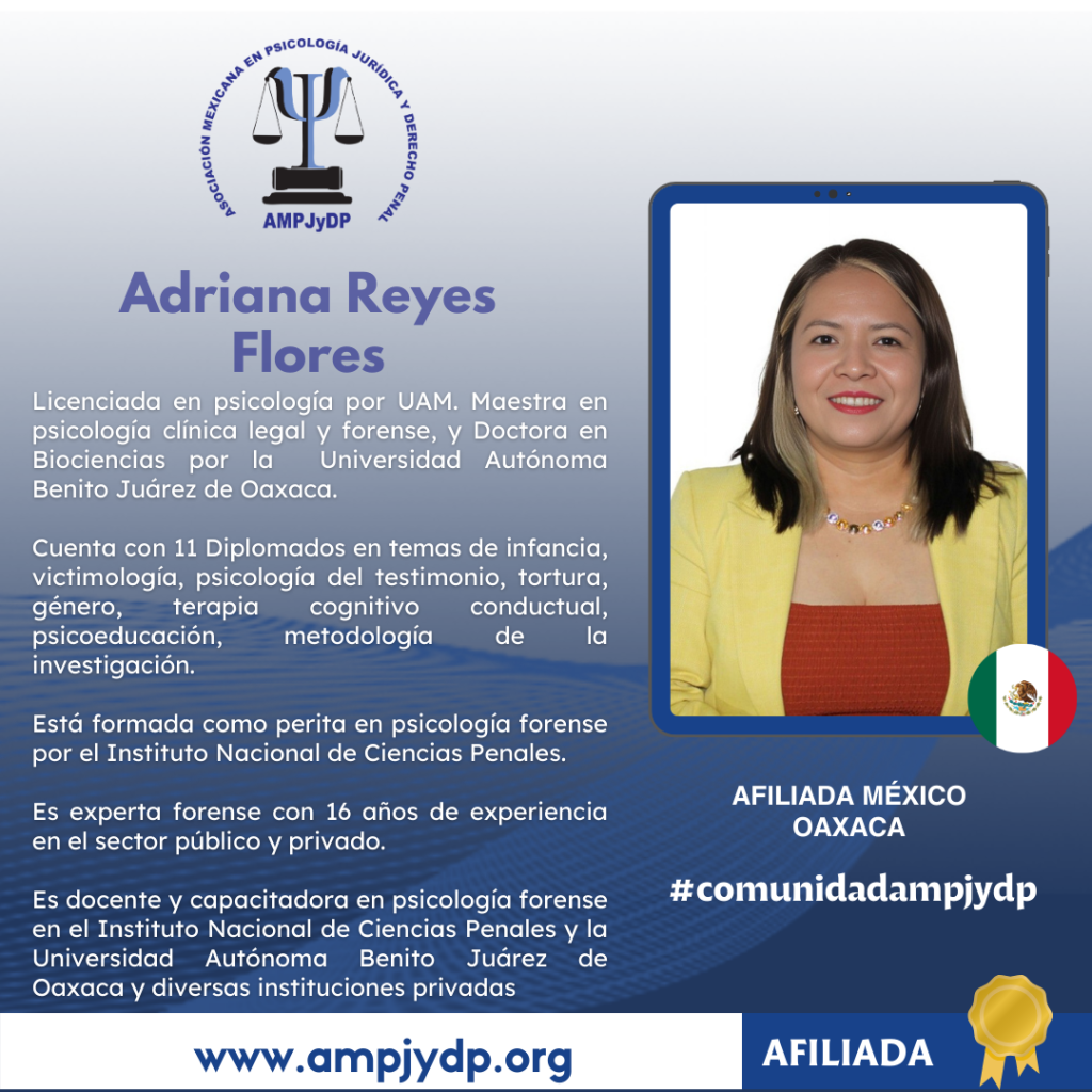 Licenciada en Psicología por la Universidad Autónoma del Estado de Hidalgo (UAEH) Maestra en Psicología Jurídica y Forense Maestrante en Derechos Humanos CAPACITACIÓN Certificación en la Aplicación del Dictamen Médico Psicológico especializado para víctimas de Tortura y otros tratos o penas Crueles Diplomado en Victimología Diplomado en Neuropsicología Diplomado en Psicoterapia Cognitivo Conductual Diplomado…